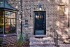 Classic brick, Tudor architecture on a lushly landscaped site.