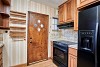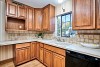 Functional kitchen with stained, maple cabinetry and newer appliances.