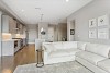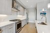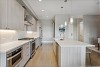 Chef’s dream kitchen with European style cabinetry, quartz counters and top-or-the-line, stainless appliances. The large center island is perfect for dining and there is an adjacent pantry.