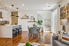 Dining area opens to the lushly landscaped yard area with deck and pergola for outdoor entertaining and relaxing.