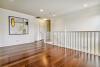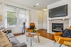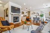 Spacious living area with gas fireplace and wood floors throughout the living areas.