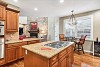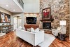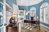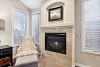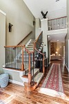 This expanded Prestwick floor plan features a spacious entry with Cherry floors which leads to the bayed study immediately to the right. This room is bright and sunny and has beautiful, built-in bookshelves and is the prefect space for the work at home professional or a relaxing library space. Beyond the study is the formal dining room with venetian plaster wall treatment and built-up crown moldings, great for family gatherings. Straight ahead is the vaulted great room with stone facade fireplace, custom built-ins and windows overlooking the back patio and privately landscaped back courtyard. This private outdoor space is lush with mature landscaping and features a tranquil water feature. Adjacent is the kitchen/with stainless appliances, slab granite counters, center island and eating bar that opens to the great room. Also on the main level is the primary suite with vaulted ceiling, fireplace, luxurious, “spa” style bath and two, walk-in closets. There is also a convenient powder bath on the main floor as well as a laundry room with cabinets sink and storage.
