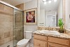 Second bedroom includes a generous closet with custom closet built-ins and adjacent bath, perfect for guests or would make a great den or home office.