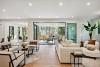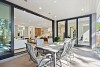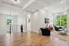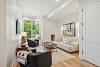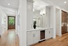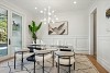 The formal dining room is perfect for entertaining with the adjacent butler pantry with wine refrigerator and French doors offering a view to the tree lined street.