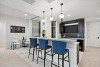 The open concept floor plan seamlessly connects the great room with oversized fireplace and bar, kitchen and informal dining area to the outdoors through a sliding glass wall in the great room and sliding door in the informal dining area to the covered patio and terrace with fire pit in the private and fenced back yard.