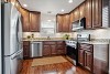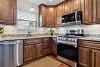 Updated kitchen with re-configured layout plus newer cabinetry, slab granite counters, new stainless gas range, dishwasher and microwave and newer stainless refrigerator.