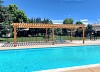 Brick patio for outdoor living overlooking the greenbelt and pool area.