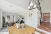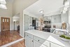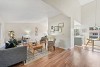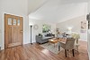 This turnkey gem offers California contemporary style and an easy living layout. Natural sunlight pours through large windows, illuminating the open floorplan. The spacious kitchen has been tastefully updated with a stylish cabinet color, hardware, and custom epoxy countertops. Brand new appliances include a stainless steel smooth top range, microwave and refrigerator. The new stainless steel workstation sink is set under the large sunny kitchen window overlooking the elevated backyard. The front room is spacious enough for a formal living room and home office and flows into the formal dining room. Enjoy casual meals in the breakfast nook which sits adjacent to the bright family room featuring a charming wood burning fireplace and new sliding door opening to the backyard. A blank canvas awaits your personal touch as you imagine the possibilities for the outdoor space. The open staircase lends architectural interest and a view of the rooms below. The primary bedroom offers a serene en-suite retreat and the secondary bedrooms utilize the full hall bath. Both bathrooms boast new vinyl flooring, vanity and fixtures. There is brand new carpet throughout, all new ceiling and wall paint. All the doors and trim have been freshly painted and updated with stylish hardware. The oversized garage offers extra storage or workspace. New roof, gutters and window screens installed in November of 2023. Located on a beautiful street, situated next to the greenbelt with a walking path, near parks, schools, the library and shopping. This home is ready for the holidays. Move right in and start creating your own special memories years to come!