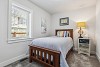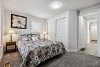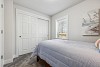 Primary bedroom overlooking the lush, green front yard with a generous closet.