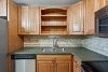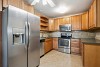 Newer, expanded kitchen with 42" soft close cabinetry, solid surface counters and stainless appliances.