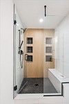 The light-filled main living areas flow effortlessly, showcasing refined finishes, wide-plank wood floors, designer curated lighting and contemporary touches throughout.