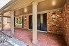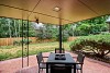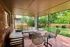 The large covered patio overlooks the fenced back yard.