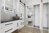 · Primary bedroom with en-suite bathroom, floating vanity and custom vanity table.
