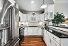 The kitchen with rich wood cabinetry, slab granite counters, and stainless steel appliances is perfect for the chef in the family.