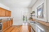 The updated kitchen is a standout — granite counters, stainless appliances, plus generous prep space for everyday meals or entertaining. Just off the kitchen, a refinished sunroom bathed in natural light opens through French doors to a private, fully fenced backyard — an everyday retreat with mature trees, a dog run, perennial gardens, and a vine-draped storage shed that comes alive in summer.