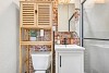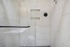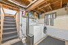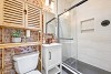 The remodeled three-quarter bathroom feels like a spa, with fresh tile and a skylight that floods the space with natural light. The main-level bedroom offers a walk-in closet and peaceful backyard views. Downstairs, a partial basement (accessed via floor hatch in the sunroom) provides convenient built-in laundry and additional storage.